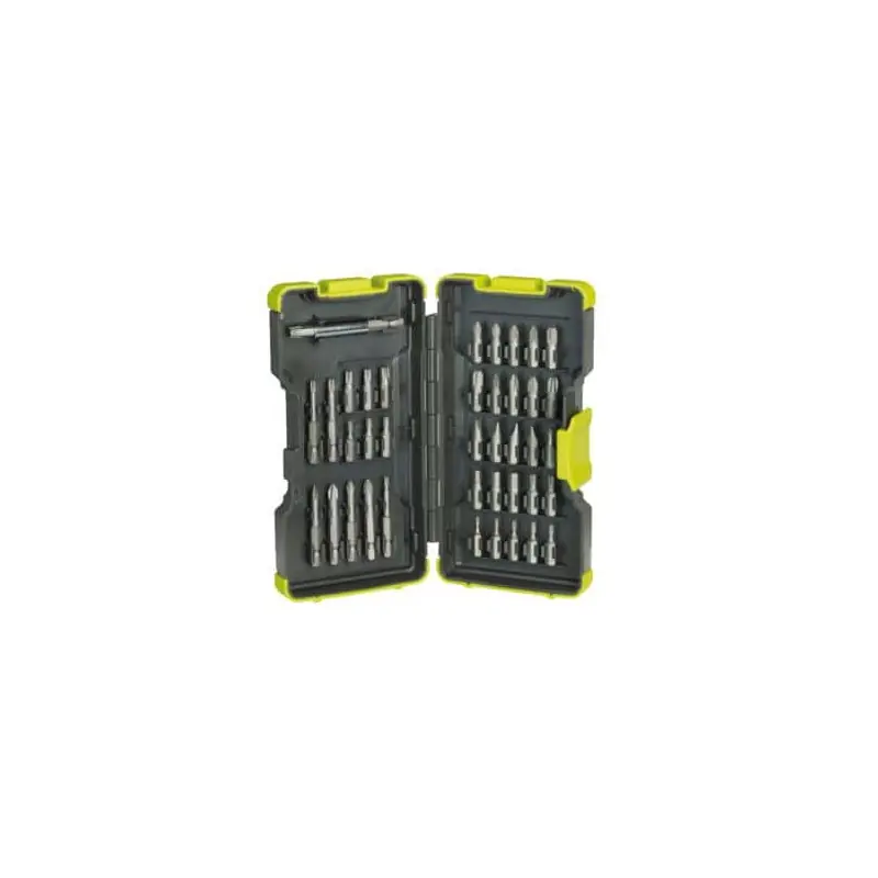 A RYOBI Shockproof Set of 40 Screwdriver Bits - Bit Holder RAK40SD that contains all the bits needed for your common screwdriving tasks. It is made up of various Torx, Phillips, Flat, and Pozidrive bits.
