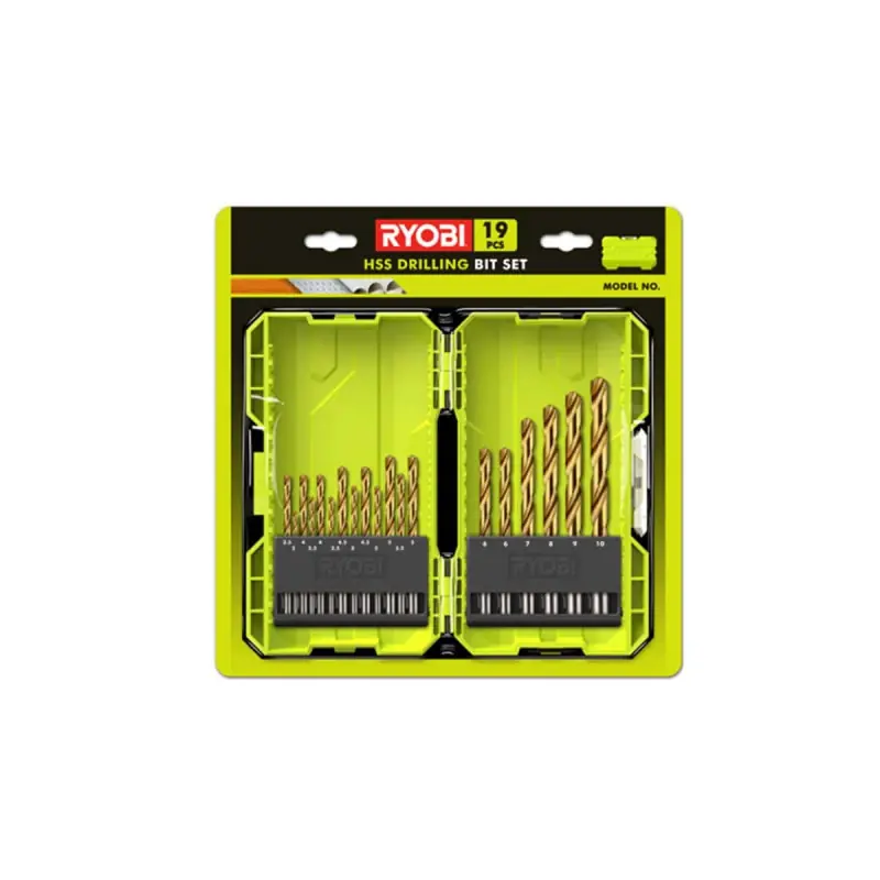 The RYOBI stackable set of 19 HSS metal drill bits RAK19HSS2 brings together all the drill bits you will need for your drilling tasks. With its stackable feature, it can be combined with other sets and also stored more easily.