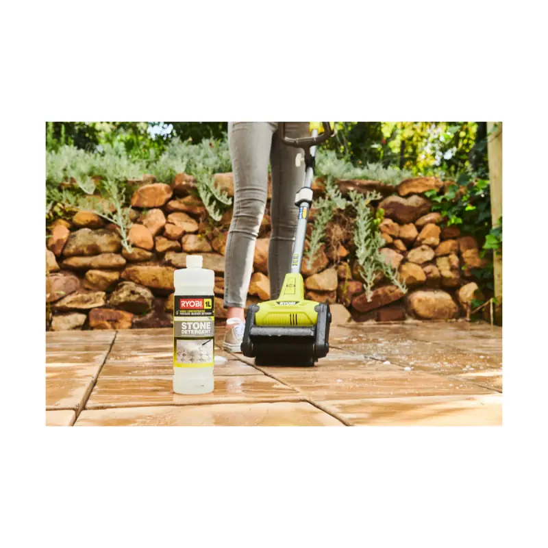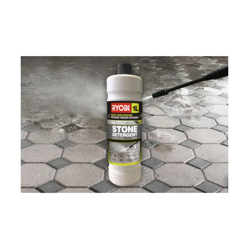 The RAC731 stone detergent is compatible with stone surfaces. Use it with your RYOBI pressure washer and say goodbye to stains and algae.