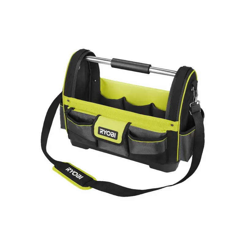 The RYOBI tool basket - 38 L - RSSLOT1 is perfect for your travels! It features a rigid and reinforced base that is water-resistant for optimal protection of your tools. This 38 L basket ensures your comfort and durability with a stainless steel bar, padded handle, and shoulder strap, as well as pockets made from strong and durable fabric. This original and functional bag consists of multiple compartments to store all your tools; a very spacious main open pocket, closed pockets, open pockets, and a hook for your tape measure. This basket is therefore designed for travel in humid locations while being functional and comfortable.