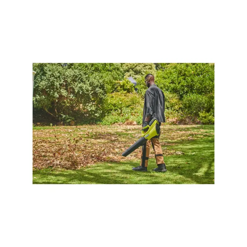 The RYOBI Turbo Jet 36V Blower - Airflow 193 km/h - Without battery or charger - RY36BLB-0 is a powerful tool suitable for clearing large or wet debris in driveways, patios, and gardens, whether small, medium, or large. The Turbo Jet technology minimizes air loss to enhance efficiency during use. The device adapts to your needs with a speed control feature, and comfort is not overlooked as the design has been crafted to combine lightness and ergonomics. Blower compatible with all 36V Max Power batteries (sold separately).