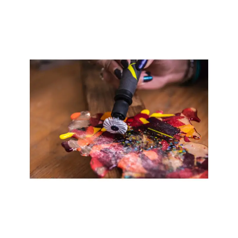 The RYOBI universal brush for multifunction mini-tools - Grit 120 - RAR110 is an accessory that fits all RYOBI mini-tools as well as those from other brands with a 3.2 mm chuck. This allows you to access hard-to-reach places to remove oxide from rusty metals or to strip paint, all without damaging the treated surface. This brush is ideal for use on metal, plexiglass, plastic, and tiles.