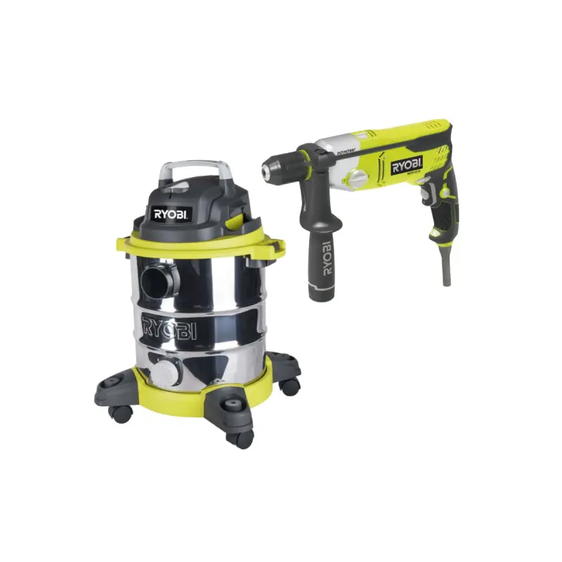 The RYOBI pack includes awet and dry vacuum cleaner and an SDSPLUS rotary hammer ideal for carrying out drilling and chiselling work without leaving any dust traces. With its powerful 1050 W motor combined with a striking force of 3.6 joules EPTA, you can drill into wood (up to 40 mm), metal (up to 13 mm), and concrete (up to 26 mm). Additionally, the device features a chuck that fits all drill bits and has 3 modes for all situations. After your sanding activities, you can use the wet and dry vacuum cleaner. Equipped with a powerful 1250 W motor paired with a 20 L stainless steel tank, the vacuum cleaner offers better resistance and longevity. It also has a large capacity to clean up even after several projects.