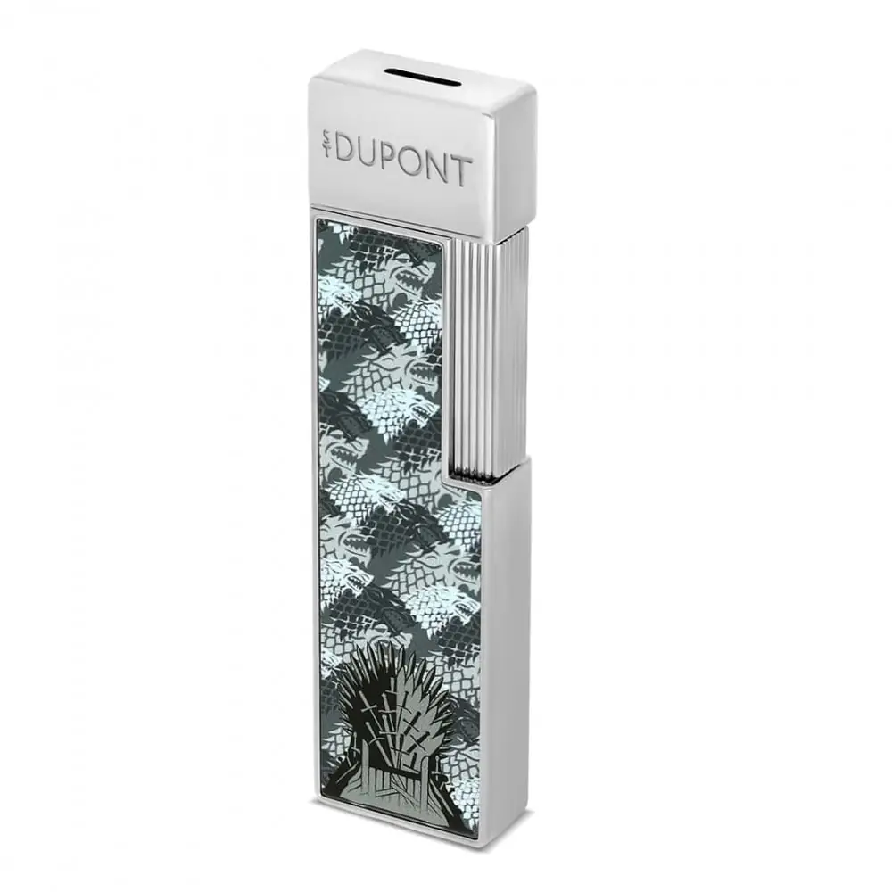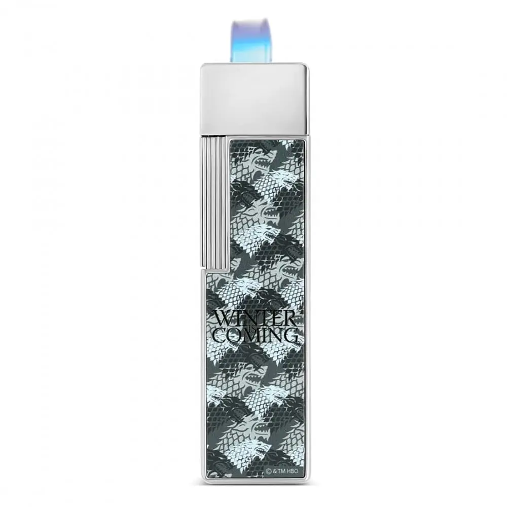 the st dupont twiggy game of thrones stark chrome lighter with its 1 cm blue torch flame is a refined and high-performance accessory. its elegant design inspired by house stark makes it an essential collector's item.