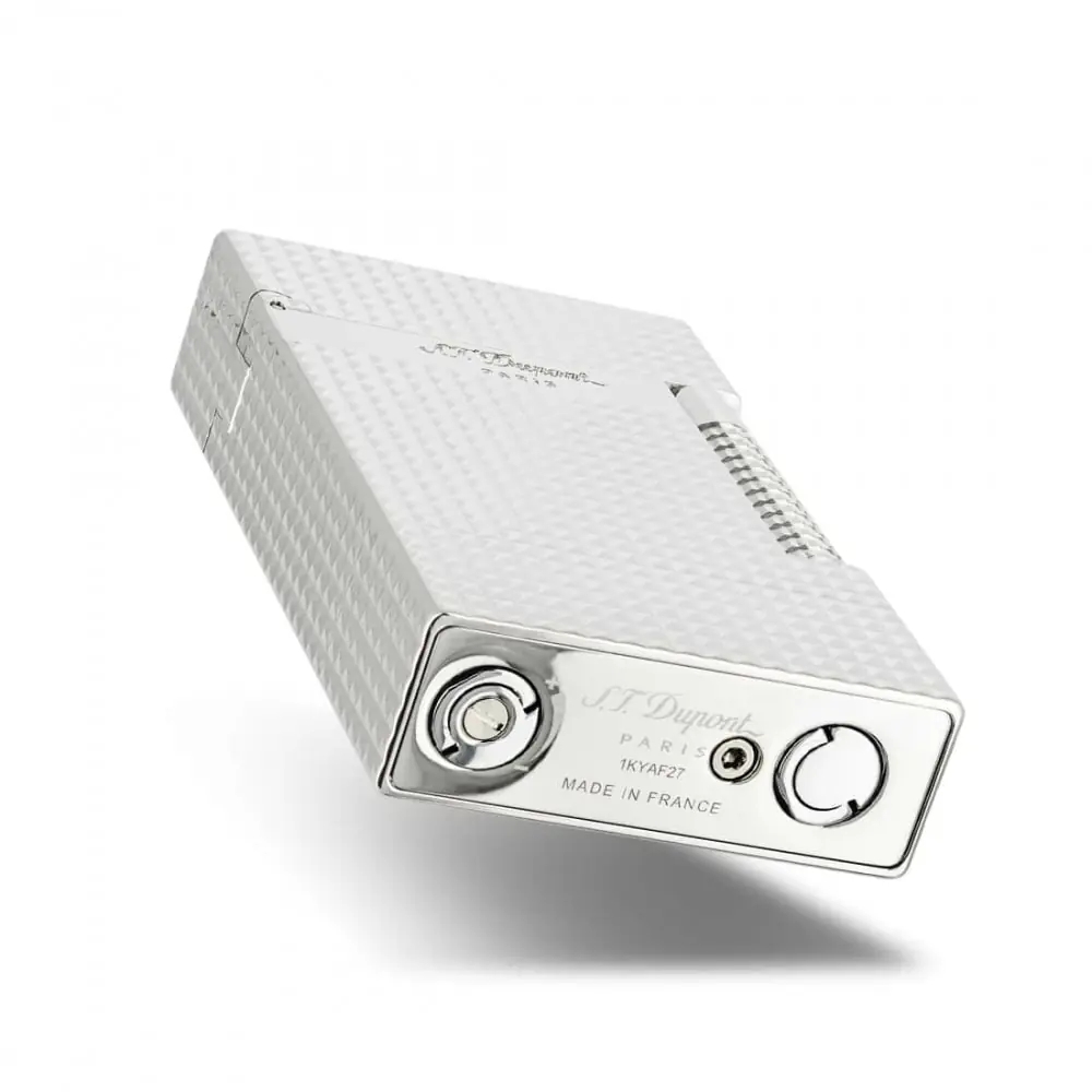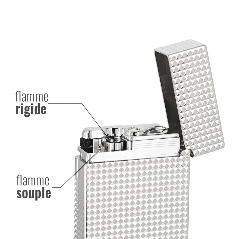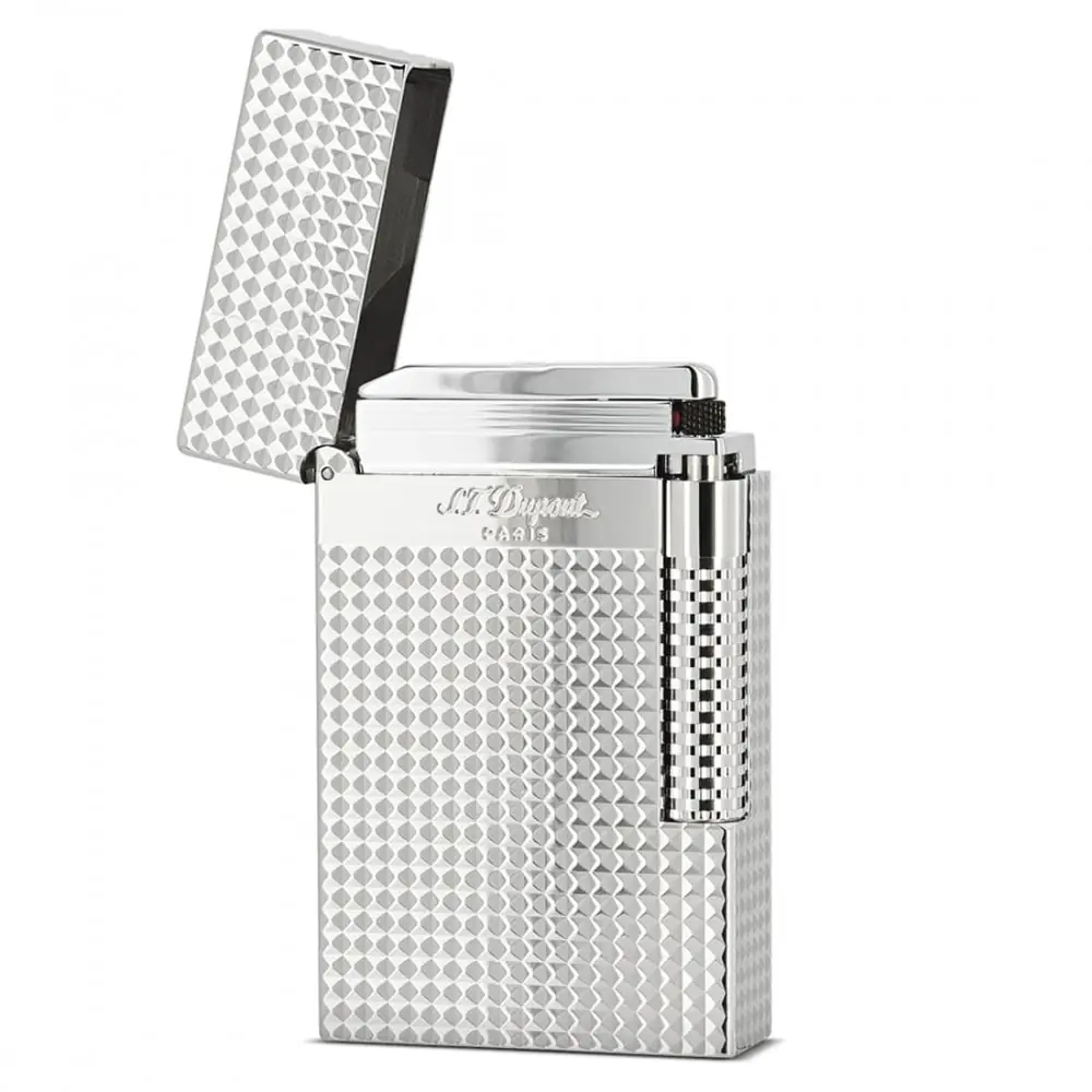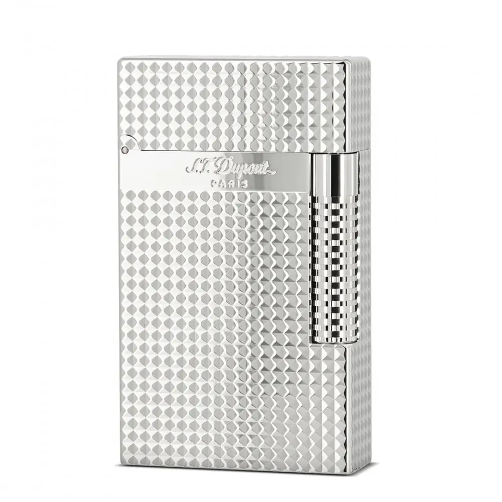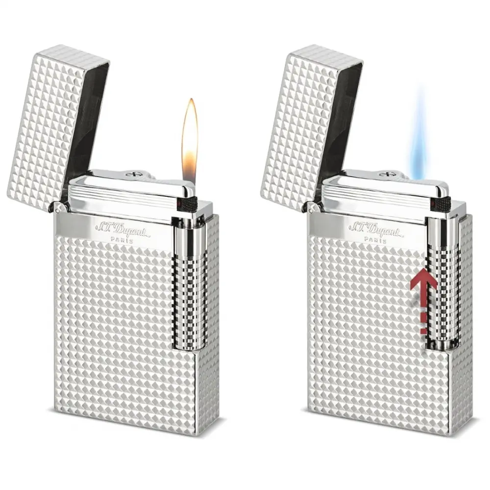 luxury cigar lighter signed st dupont. brass and silver palladium with diamond tips. offers two flames: a flexible one a torch with its lens at the opening of the lighter.