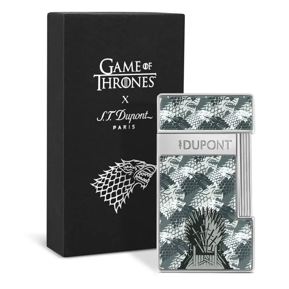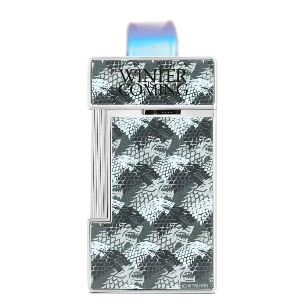 the st dupont slimmy game of thrones stark chrome lighter is a slim and powerful luxury accessory decorated with house stark motifs. its durable torch flame and chrome finish make it a must-have model.