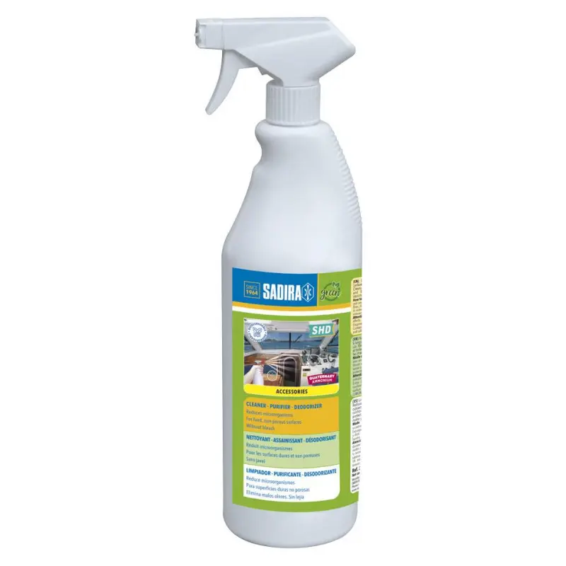 Maintain hygiene onboard and protect your vessel and crew with a solution designed for marine environments. Sadira's SHD sanitizer is suitable for all surfaces and contains no bleach or alcohol, minimizing risks and respecting the environment.