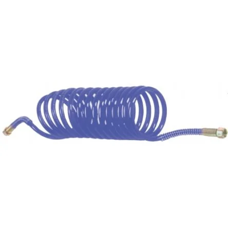Durable polyurethane coil tubing with connector, ideal for industrial use.