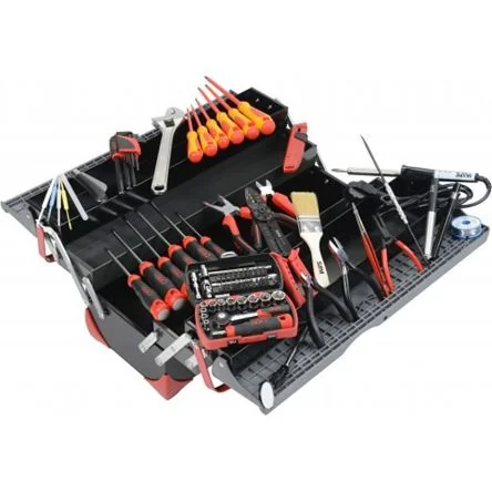 A comprehensive 83 piece tool kit designed for electro-mechanical projects and DIY enthusiasts.