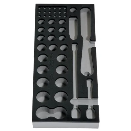 The SAM 1/3 Empty foam module for 1/4 inch sockets and accessories is of Foam material.It is tough