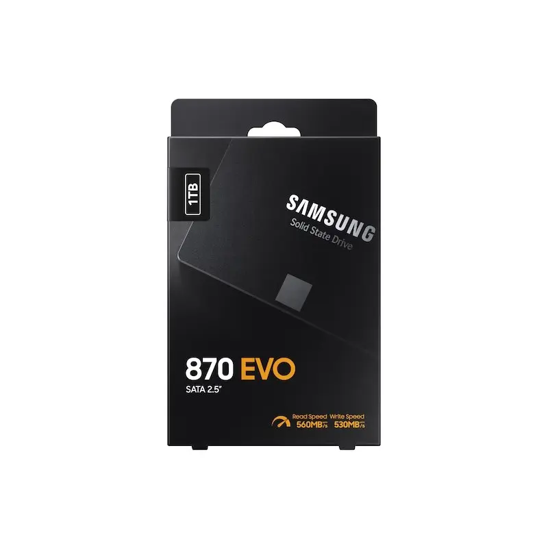 The worlds favourite SSDThe latest model of the worlds best-selling SSD series has finally arrived. The 870 EVO inherits the legacy of Samsungs pioneering SSD technology, boasting upgraded performance, reliability and compatibility to suit the needs of anyone from content creators and IT professionals to everyday users.Excellence in performanceThe 870 EVO achieves the maximum SATA interface limit of 560/530 MB/s sequential speeds. Everyday users can now enjoy professional-level SSD performance. Intelligent TurboWrite accelerates write speeds and maintains long-term high performance with a larger variable buffer.Industry-defining reliabilityProviding up to 2,400 TBW under a 5-year limited warranty, the 870 EVO meets the industrys leading standards of reliability. It withstands tasks from everyday computing to 8K video processing and comes equipped with the latest 6th Gen. VNAND and MKX controller that ensure a stable host experience.More compatible than everThe 870 EVO passed compatibility tests with major host systems and applications, including chipsets, motherboards, NAS and video recording devices. As the latest entry in the globally best-selling EVO series, the 870 EVO‘s proven versatility is compatible with any users systems and tasks.Upgrade with easeUpgrading to the 870 EVO is made easy for anyone with a desktop PC or laptop that supports a standard 2.5-inch SATA form factor. Enjoying this masterpiece SSD is as convenient as plugging in the 870 EVO into a SATA slot and letting the renewed migration software take care of the rest.Samsung Magician softwareMake your drive work like magic. The new and improved Samsung Magician 6 software will keep your SSD in check. You can easily manage your drive with a wide range of useful tools to keep up with the latest updates, monitor the drive's health and status, or even enhance its performance.World's no.1 flash memoryExperience the superior performance and reliability that you can only get from the world's number one brand for flash memory since 2003. All firmware and components, including Samsung's world-renowned DRAM and NAND, are produced in-house, allowing end-to-end integration for quality you can trust.