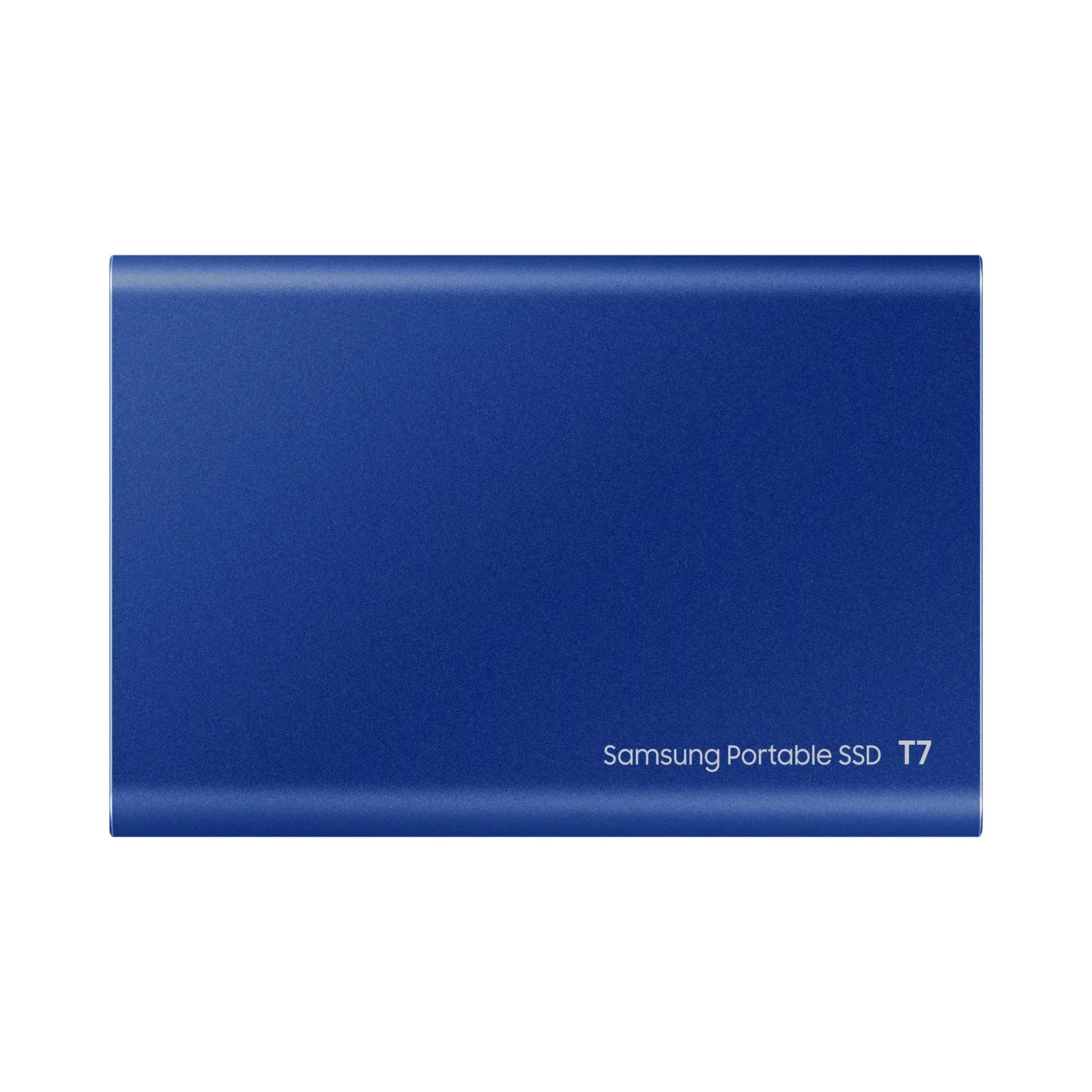 Transfer in a flashFeaturing sequential read/write speeds of up to 1,050 MB/s and 1,000 MB/s, the T7 can transfer massive files in mere seconds via its USB 3.2 Gen 2 interface to give your workflow a much-needed boost.Compact design with colossal capacityStore it all on a credit card-size drive with capacity from 1TB to 4TB in choice of blue or grey.Compatible with multiple devicesBundled with USB Type C-to-C and Type C-to-A cables for added convenience, the T7 minimises disruption, letting users switch seamlessly between Windows®, macOS®, smartphones, tablets or game consoles.Capture longer, save instantlyProlong your smartphone filmmaking with T7's excellent power efficiency. Capture and store 4K smartphone filming data simultaneously with T7. Enable instant editing with effortless T7 connection to your laptop or PC.Sophisticated thermal solutionUse T7 without worrying about overheating. The T7's advanced thermal solution uses the Dynamic Thermal Guard to withstand and control heat, so the compact SSD stays at an optimal temperature even at fast speeds.Built strong and secureThe T7 can be secured with an AES 256-bit encrypted password and is encased in a sturdy metal body that keeps data intact from falls of up to 2 meters. The T7 is confidently backed by a 3-year limited warranty.Samsung Magician softwareUnlock the full power of T7 with Samsung Magician software - a user-friendly suite of optimisation tools that facilitate the best portable SSD performance. Protect valuable data, monitor drive health, and get the latest firmware updates.Bringing innovations to lifeFor decades, Samsungs NAND flash memory has powered groundbreaking technologies that have changed every part of our daily lives. This NAND flash technology also powers our consumer SSDs, making room for the next big push of innovation.Lightning-fast transfer speedsWith up to 1,050 MB/s transfer speed, the T7 puts you full speed ahead at work or play.Extensive compatibilityFreely switch between devices during your workflow without disruption.Sleek and compact styleEffortlessly transfer vast data with the light and compact T7.