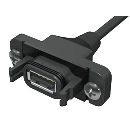 Durable IP68 USB connector for secure female to male panel mounting in harsh conditions.