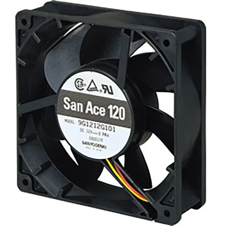 Sanyo Denki 9G Series Axial Fan, 12 V dc, DC Operation, 200.4m³/h, 7.32W, 610mA Max, 119 x 119 x 38mm - 9G1212E101