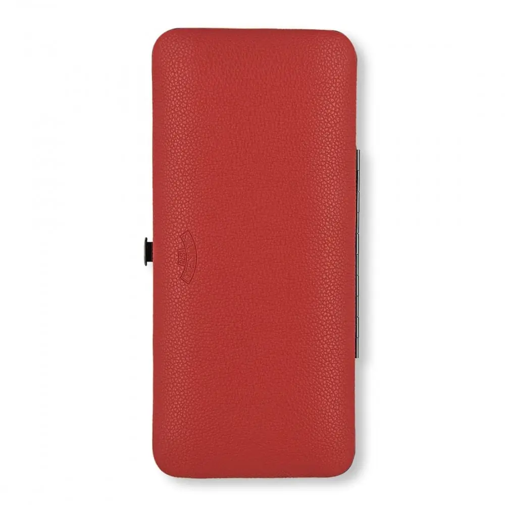 red leather cigar case with wooden lining from the savinelli brand designed to carry and protect up to three cigars with a diameter of 21 mm. an elegant and functional accessory for cigar lovers.
