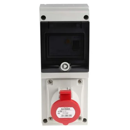 Scame, DOMINO IP44 Red Wall Mount 3P + E RCD Industrial Power Connector Socket, Rated At 32A, 415 V - 632.3216-R