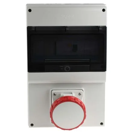Wall mount industrial power connector. It comes a range of high-quality wall mountable power connectors. Manufactured to industry standards these connectors are easy to assemble and are a fantastic industrial plug solution for powering tools and machinery at a range of different voltage requirements. Features and benefits. ;ul> ;li>Lockable protection window on all variants to enhance safety ;/li> ;li>IP44 Rated, 0410185 is IP66 rated ;/li> ;li>Wall mountable ;/li> ;li>Red and blue colours offered in this range of power connectors ;/li> ;li>Voltage ratings of 415V and 230v offered in this range ;/li> ;li>Angled socket, allowing a more convenient connection ;/li> ;li>All models offered in the range are highly reliable and excellent quality ;/li> ;/ul>. Applications. These Industrial connectors are widely used in a range of applications such as; ;ul> ;li>Providing power for machinery on construction sites ;/li> ;li>Woodworking machines ;/li> ;li>Maintenance workshops in the light industry ;/li> ;li>Powering lighting equipment in the sports and entertainment industry ;/li> ;/ul>. What are IP66 and IP44 ratings?. IP44 rating provides protection from tools and small wires greater than 1 millimetre as well as from water spray from any direction. IP66 rating provides protection from total dust ingress as well as protection from high pressure water jets from any direction.