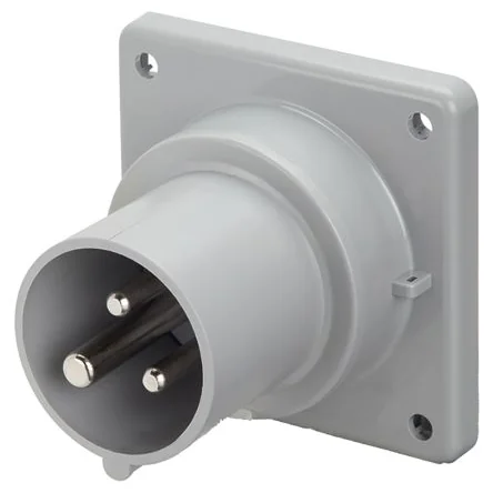 Appliance Inlets. Scame panel mounted appliance inlets are angled at 90° for a more secure connection. With a durable high-strength plastic housing and rated IP44 (Splash Proof,) the inlets are ideal for industrial purposes. Multiple pole formats of these inlets are available, and have a current rating of 16A, 32A or 63A.