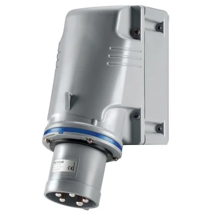 Durable IP44 rated wall mount power plug for secure industrial connections.