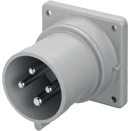 Appliance Inlets. Scame panel mounted appliance inlets are angled at 90° for a more secure connection. With a durable high-strength plastic housing and rated IP44 (Splash Proof,) the inlets are ideal for industrial purposes. Multiple pole formats of these inlets are available, and have a current rating of 16A, 32A or 63A.