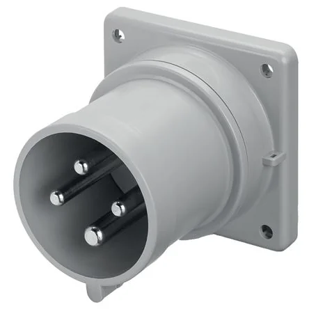 Appliance Inlets. Scame panel mounted appliance inlets are angled at 90° for a more secure connection. With a durable high-strength plastic housing and rated IP44 (Splash Proof,) the inlets are ideal for industrial purposes. Multiple pole formats of these inlets are available, and have a current rating of 16A, 32A or 63A.