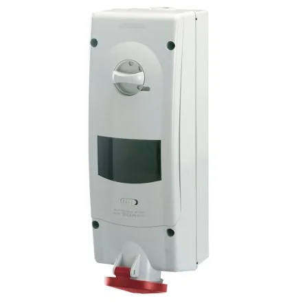 Vertical - RCD Protected. Scame surface mounted RCD protected interlocked sockets feature hard plastic housing and a covered socket. They are designed for industrial use, but may also be suitable for a commercial environment. Designed with safety in mind, this range features a mechanical interlock that prevents the switch from closing if the plug is not inserted, the extraction of the plug if the switch is closed, and the opening of the socket outlet cover if the switch is closed. These outlets are available as protected to either IP44 (splash proof) or IP67 (watertight.)