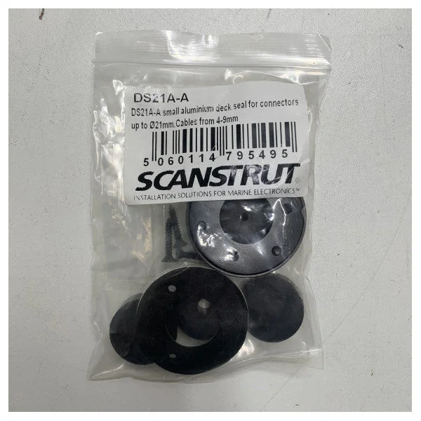 The Scanstrut DS21A-A is a waterproof cable grommet made of anodised aluminium for cables with a diameter of 4 to 9 mm. This grommet is perfect for sealing cables that pass through the hull or wall of a boat, caravan, or other vehicle. The robust aluminium construction ensures a long lifespan and resistance to corrosion. The grommet is easy to install and requires only a hole that is slightly smaller than the diameter of the cable.