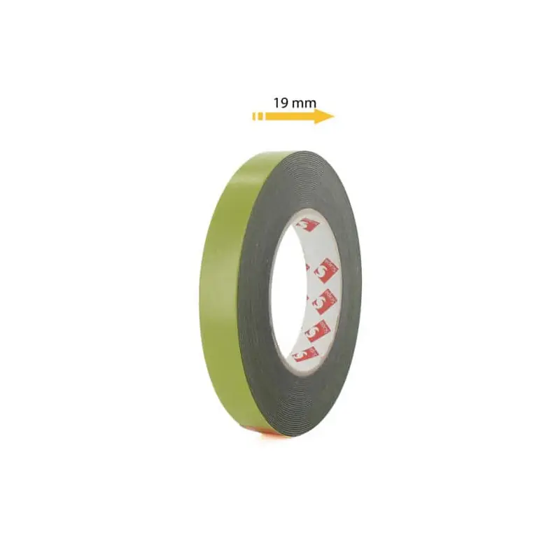The SCAPA 5589 black double-sided foam 19mm x 10m x 5 is a black closed-cell polyethylene foam coated with a high-quality acrylic adhesive on both sides with a paper interliner. This foam adhesive is ideal for the attachment of automotive rearview mirrors, electrical conduits, and can also be used for bonding decorative window mouldings.