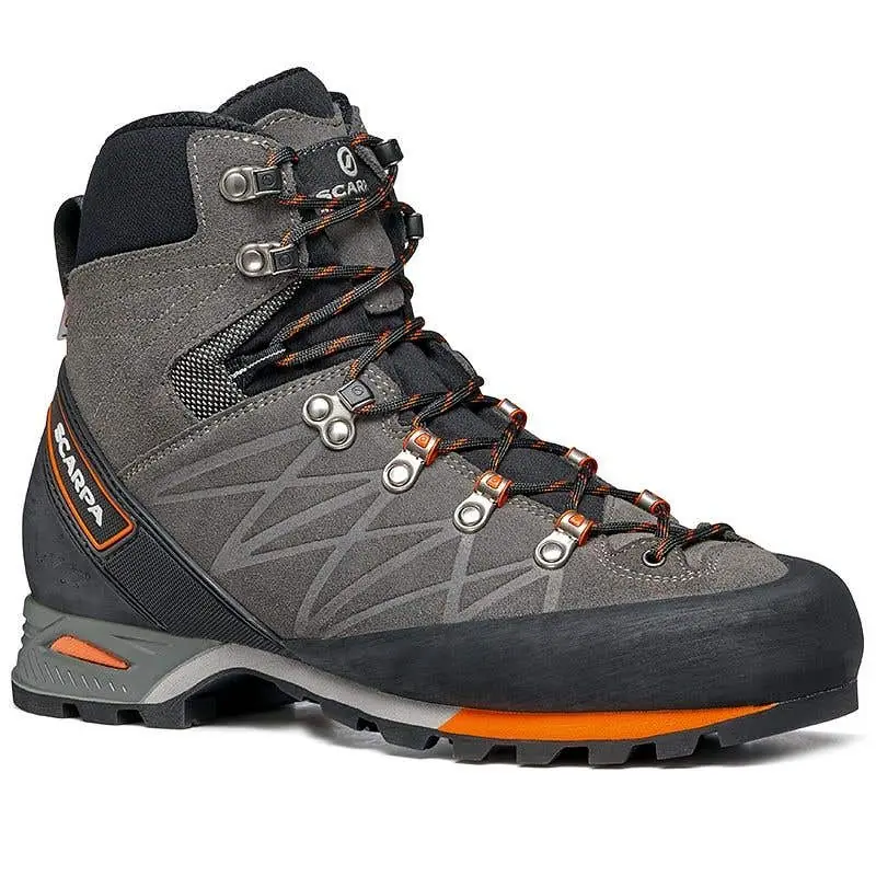 The Scarpa Marmolada Pro HD Men's Hiking Shoes are designed for alpine hikes, via ferratas, and backpacking, offering protective and waterproof footwear.