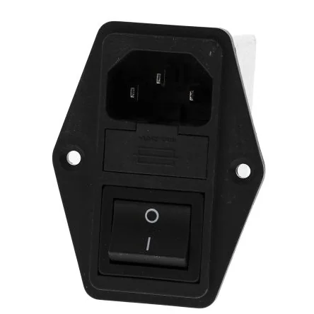 Compact IEC filter with 2 pole rocker switch and fuse holder for efficient power management.