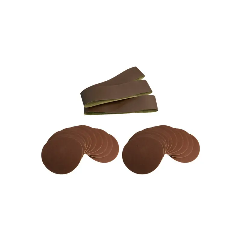 This SCHEPPACH pack includes3 adhesive strips of 180 grit, 10 discs of 120 grit, and 10 abrasive discs of 180 grit. Ready to use, these products are designed as accessories for belt and disc sanders such as the BTS800 or BTS900. Made with high-quality open-coated brown aluminium oxide, they ensure fast and durable polishing.