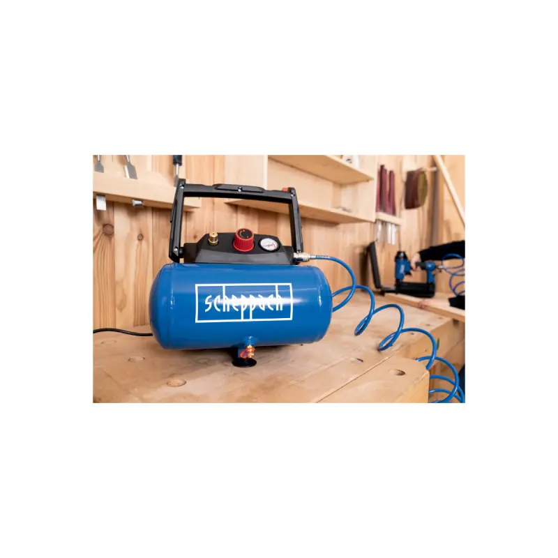 The SCHEPPACH HC06 compressor and its accessory: a 5 m hose are essential elements for all DIY enthusiasts. Indeed, this machine offers great versatility that will allow you to use it for various types of activities. It can be useful for mechanics, cleaning, painting, or even inflating your tyres. Powerful with a 1200 W electric motor, the device delivers a pressure of 8 bar for intense and quality work.