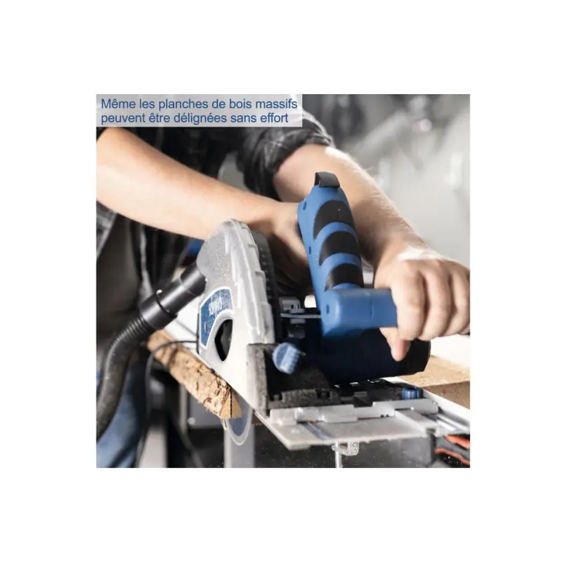 The SCHEPPACH plunge saw - 1200W - 160mm - PL56 is perfect for various projects, whether for cutting panels, adjusting pieces, or creating clean finishes. The saw is sold with rails to perform a parallel plunge cut. You will be able to make cuts on different materials such as solid wood, worktops, MDF panels faced on both sides, laminated panels, and many more.
