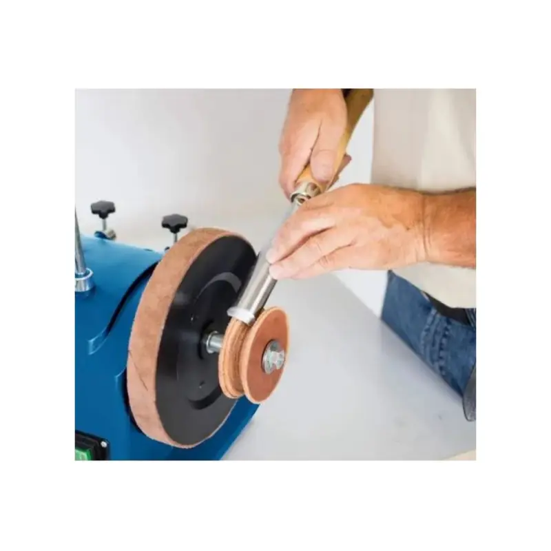 The 100 SCHEPPACH profiling deburring disc - 89490705 is compatible with TIGER2500 water sharpeners. The burr is an excess of metal that remains on the edge of a tool that has just been sharpened; this deburring disc will then allow you to remove the burr from inside gouges or chisels.