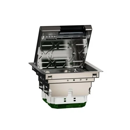 This 4 compartment floor box provides efficient access to electrical connections in a compact design.