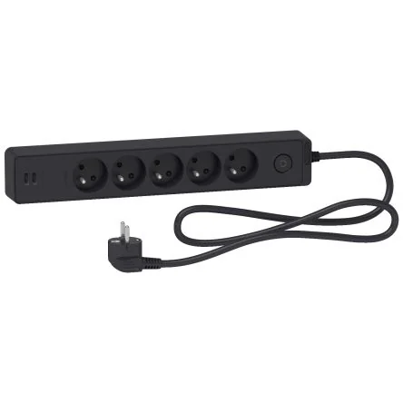 Schneider Electric French 2P 5 Gang Trailing Socket, 1.5m Cable, 16A, 250 V - ST935U1B
