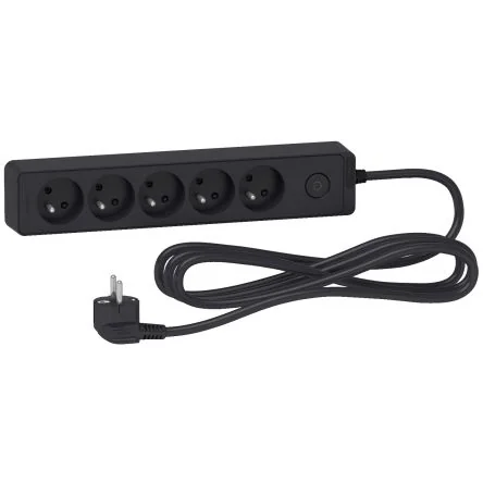 Schneider Electric French 2P 5 Gang Trailing Socket, 3m Cable, 16A, 250 V - ST9353B