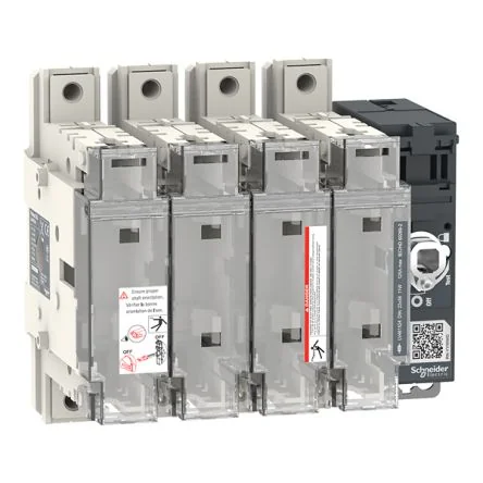 This 4 pole Fuse Switch Disconnector from Schneider Electric supports a maximum current of 125A and a fuse current rating of 100kA.