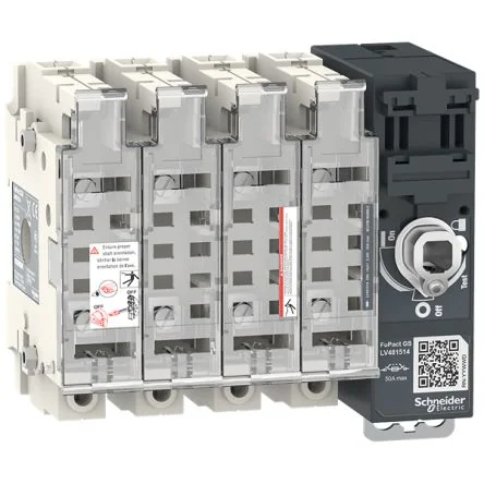 This 4 pole Fuse Switch Disconnector from Schneider Electric supports a maximum current of 50A and a fuse current rating of 100kA.