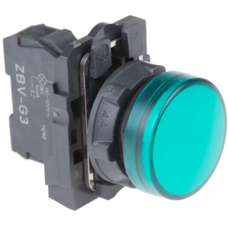 Schneider Electric, Harmony XB5, Panel Mount Green Universal LED Pilot Light, 22mm Cutout, IP66, IP67, 120V ac - XB5AVG3