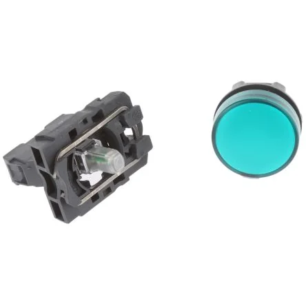 Reliable green LED pilot light with a 22mm cutout, perfect for panel mounting in various applications.