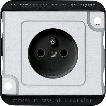 The Schneider Electric MTN Silver Plug Socket is a 16A French 2P socket designed for flush mounting.