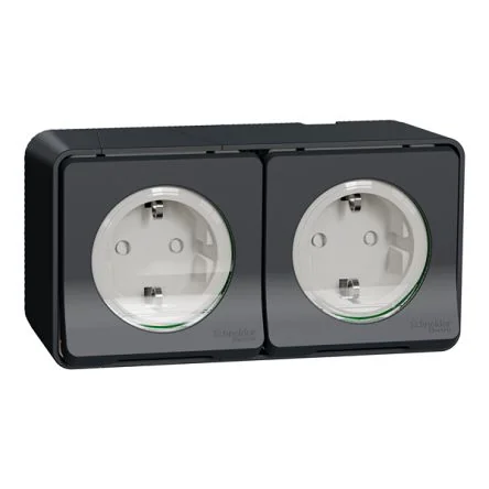 Schneider Electric MUR Black, White Plug Socket, 2P + E Poles, 16A, Indoor, Outdoor Use - MUR36029