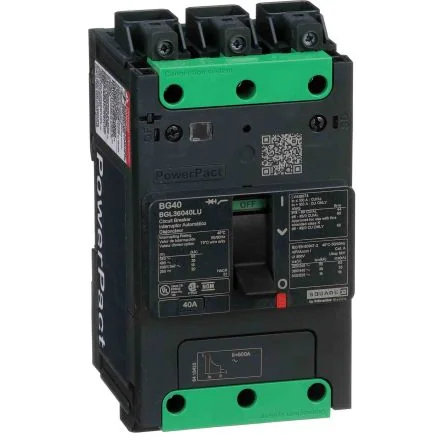 The Schneider Electric BGL36040LU is a Circuit breaker, Power Pact B,having 3 poles description with Ever link electrical connection , control wire ON end type.Mercury free