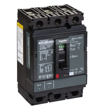 Schneider Electric, PowerPact MCCB 3P 60A, Breaking Capacity 18 kA, DIN Rail Mount - NHJL36060