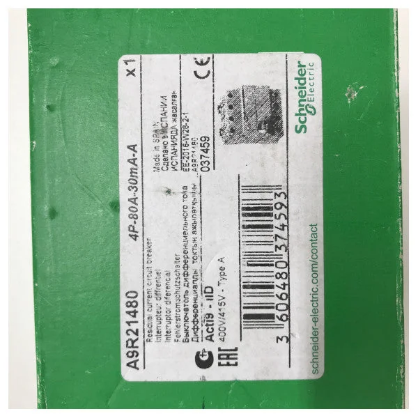 Ensure electrical safety with the Schneider Electric A9R21480 circuit breaker, designed for optimal protection.