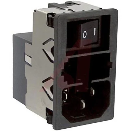 Compact filtered IEC connector with fuse holder and line switch for medical and standard equipment.