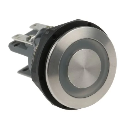 ENEC, UL, CSA. Anti-Vandal M19 ; M22 Push Button Switches - MSM Series (Single Pole). Robust pushbutton switch suitable for use in harsh environments - IK07 shock resistance (DIN EN 50102) Stainless steel housing (anodised aluminium for colour housed versions) and momentary actuator - IP67 protection for front side contact area Actuator with 4.5N operating force and 1mm travel - protrudes 1.7mm above panel Quick connect terminals Long life - up to 1,500,000 mechanical operations Non illuminated or red LED ring illuminated versions available in 19 or 22mm Ø panel cut outs Illuminated versions also include a resistor and is fixed at 24V