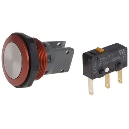 ENEC, UL, CSA. Anti-Vandal M19 ; M22 Push Button Switches - MSM Series (Single Pole). Robust pushbutton switch suitable for use in harsh environments - IK07 shock resistance (DIN EN 50102) Stainless steel housing (anodised aluminium for colour housed versions) and momentary actuator - IP67 protection for front side contact area Actuator with 4.5N operating force and 1mm travel - protrudes 1.7mm above panel Quick connect terminals Long life - up to 1,500,000 mechanical operations Non illuminated or red LED ring illuminated versions available in 19 or 22mm Ø panel cut outs Illuminated versions also include a resistor and is fixed at 24V