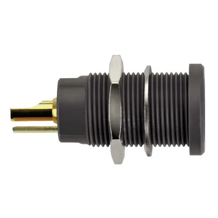 Schutzinger Kelvin Socket, Panel Mounted. Brought to you by Schutzinger, this Kelvin socket is suitable for mounting in panels up to 6 mm thick. The threaded M12 body has a hex nut and spring washer fixing for a sturdy connection to 4 mm kelvin measuring leads. This threaded kelvin socket has been developed for four terminal sensing. Features and Benefits. • UL94- V2 Polyamid body • Gold plated contacts • Maximum torque of hex nut is 45 Ncm